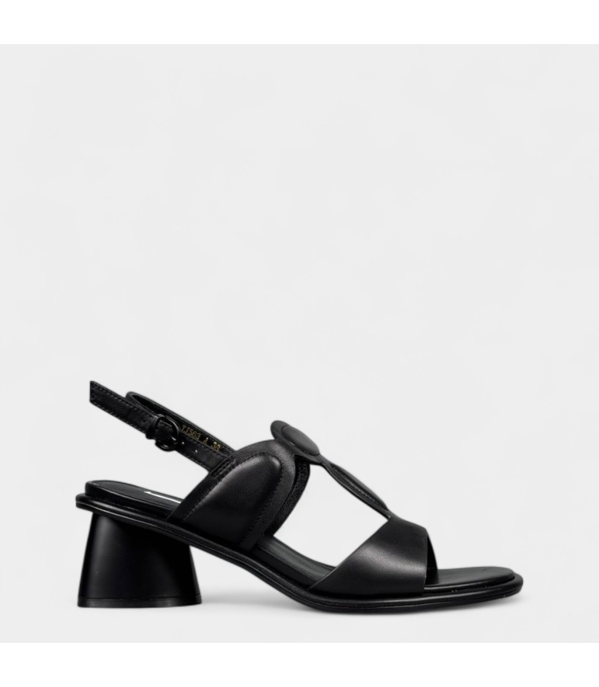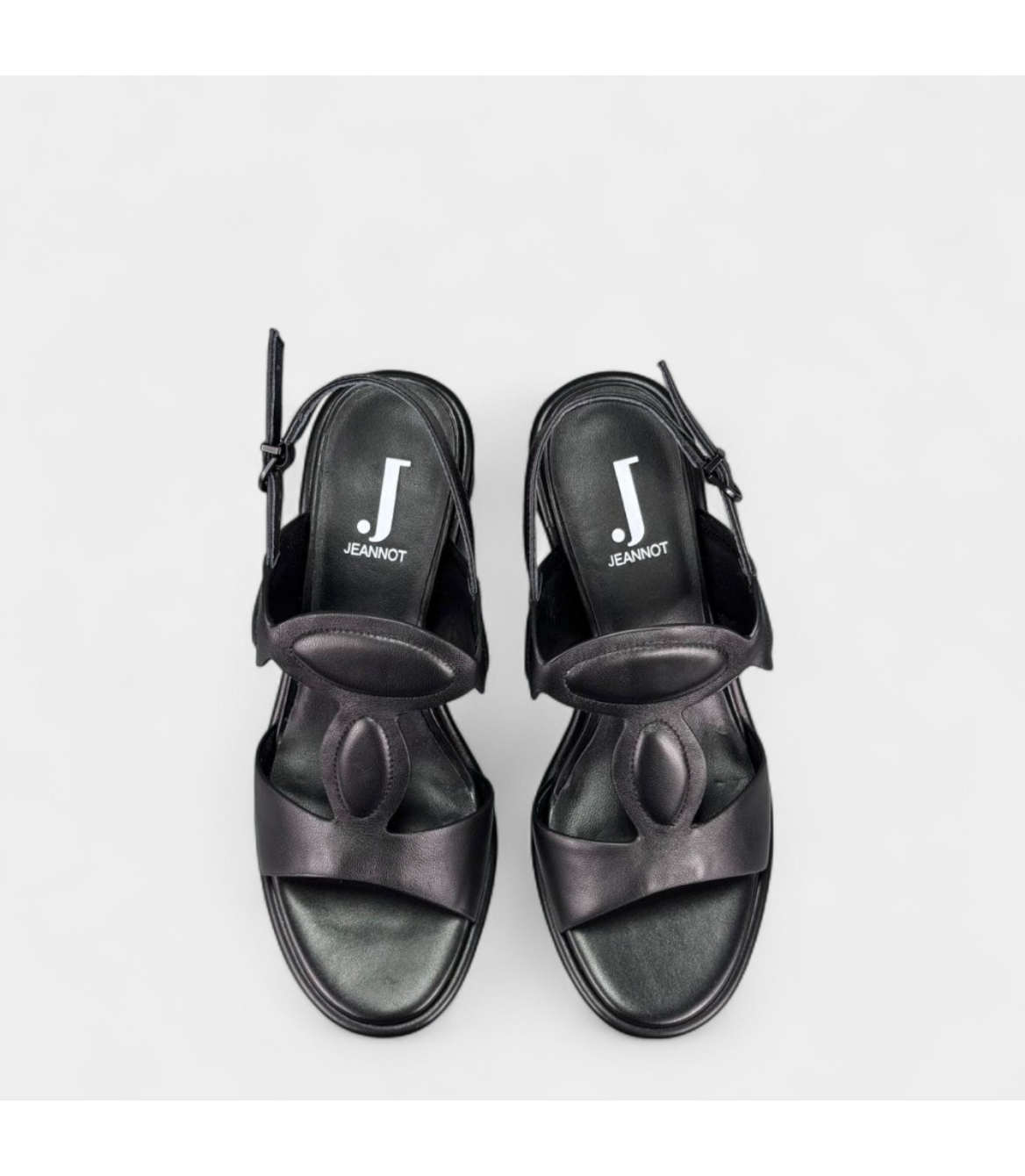 Кожані босоножки Jeannot TJ562 чорного кольору – це ідеальне поєднання класики та сучасності. Чорна шкіра має м’яку текстуру, що додає витончений вигляд будь‑якому образу. Широкий каблук не лише підвищує вашу статуру, а й забезпечує стабільність і комфорт протягом всього дня. Універсальний дизайн дозволяє легко комбінувати їх з робочим костюмом або вечірнім сукням. Гумова протіскальна підошва запобігає ковзанню навіть на мокрому асфальті, що робить ці босоножки ідеальним вибором для міських прогулянок та офісних заходів.