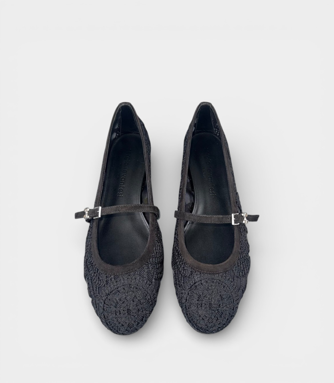 Жіночі балетки Sergio Levantesi мереживні чорні з пряжкою – витончена класика Made in Italy