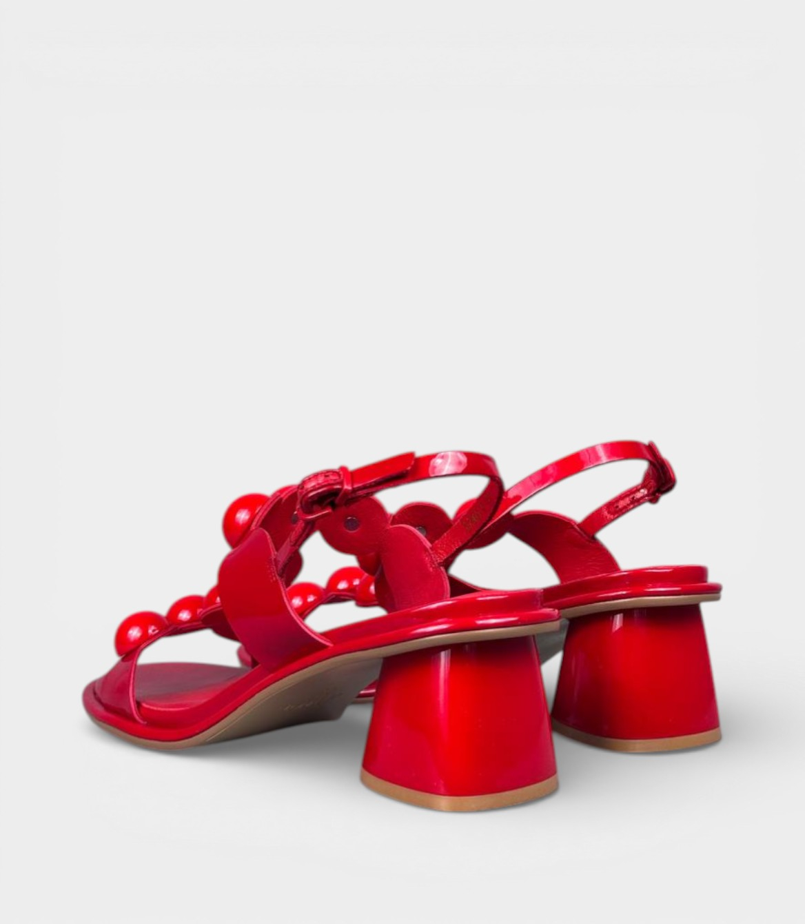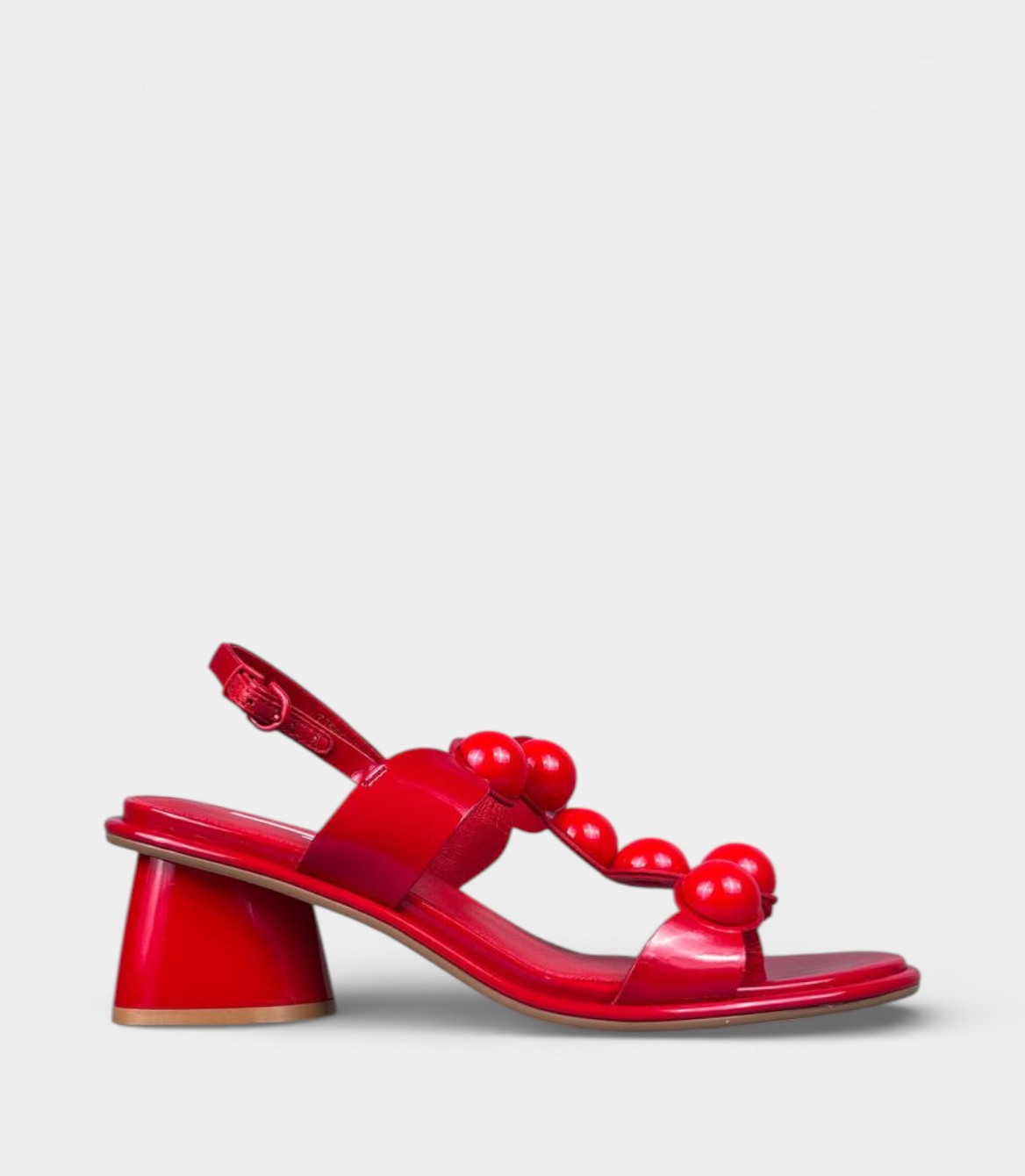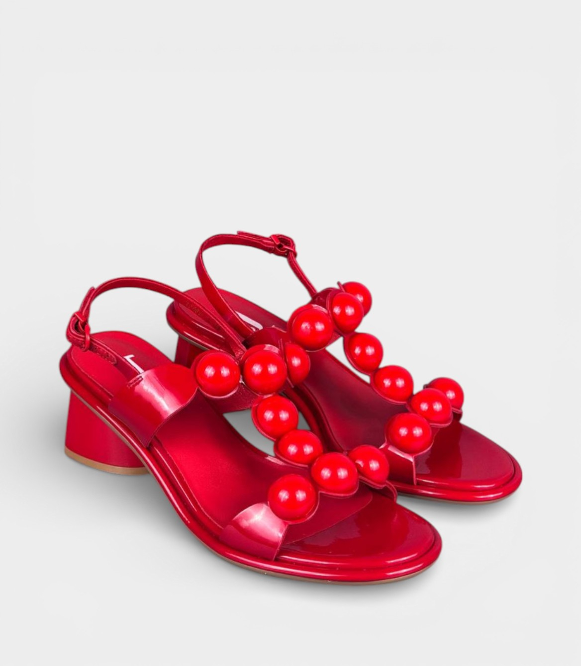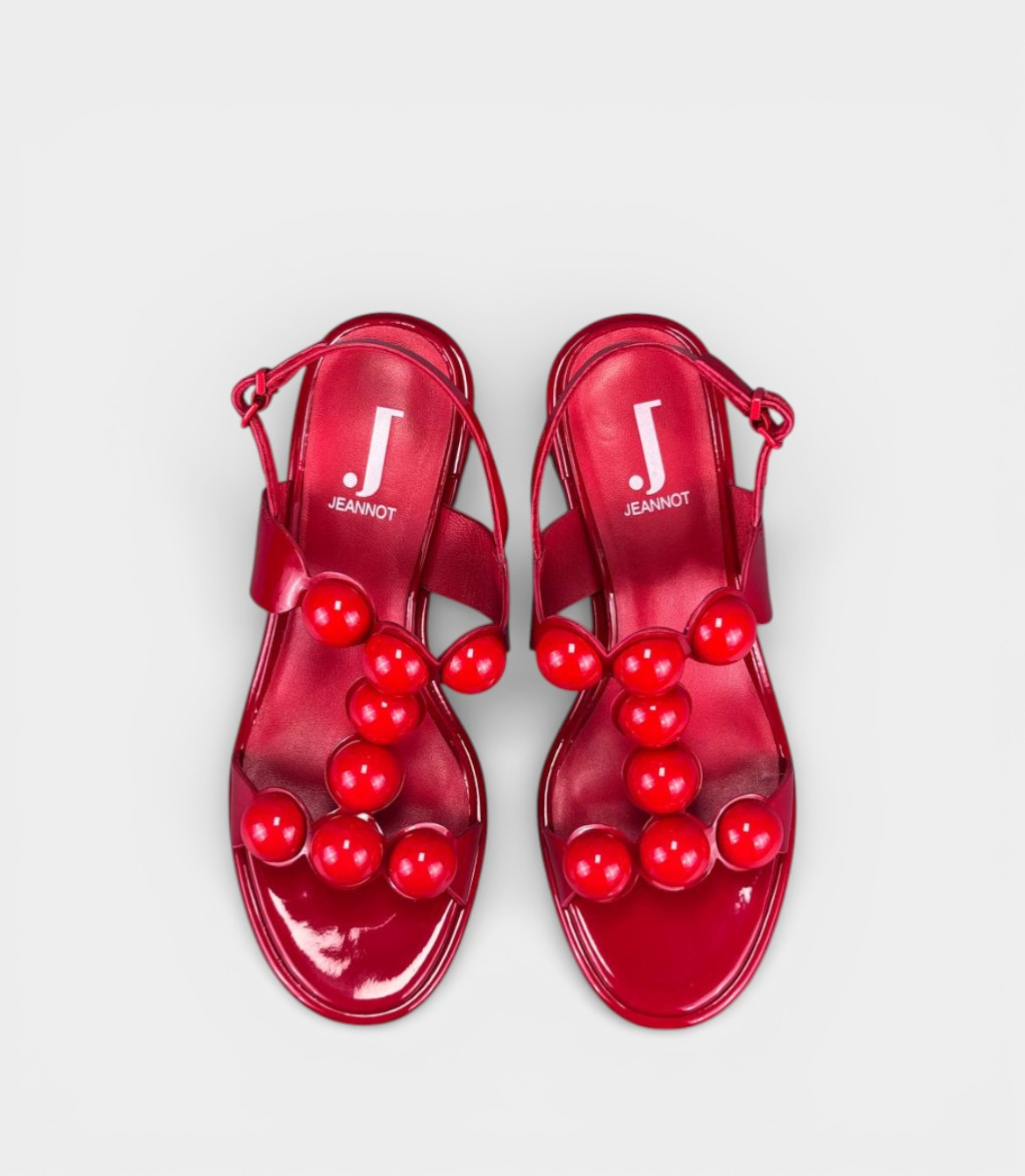 Підкресліть свою жіночність і впевненість з босоніжками JEANNOT – справжнім витвором італійського дизайну. Яскравий червоний колір і грайливий декор з кульок роблять цю модель ідеальним вибором для вечірніх виходів, свят чи стильних літніх образів.