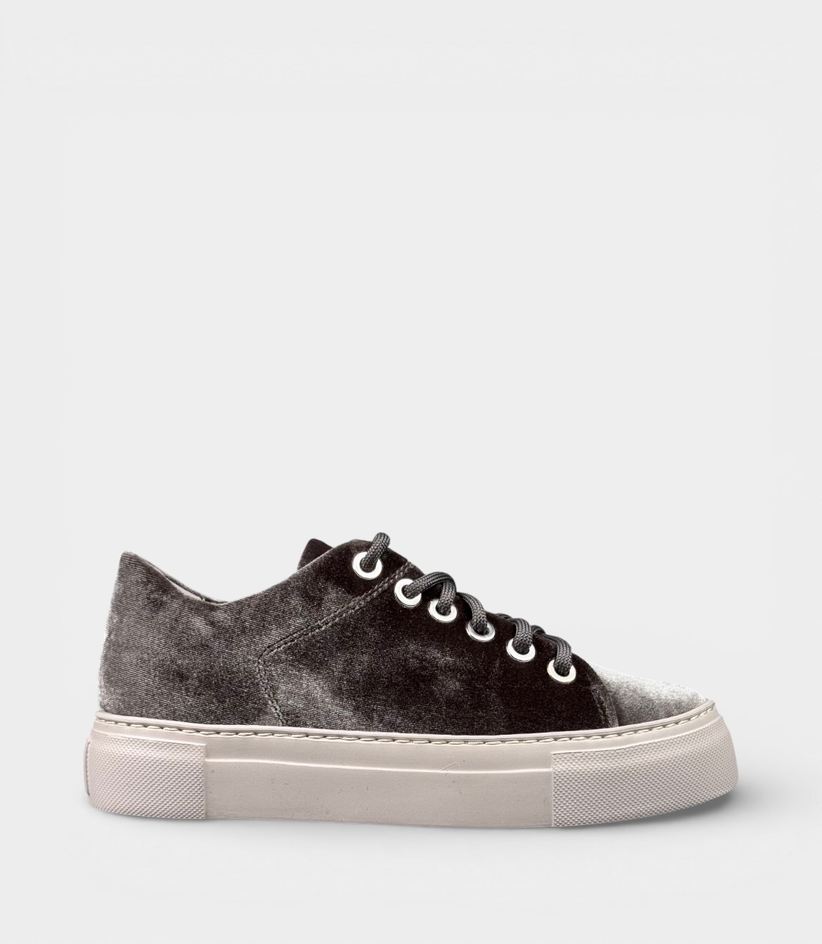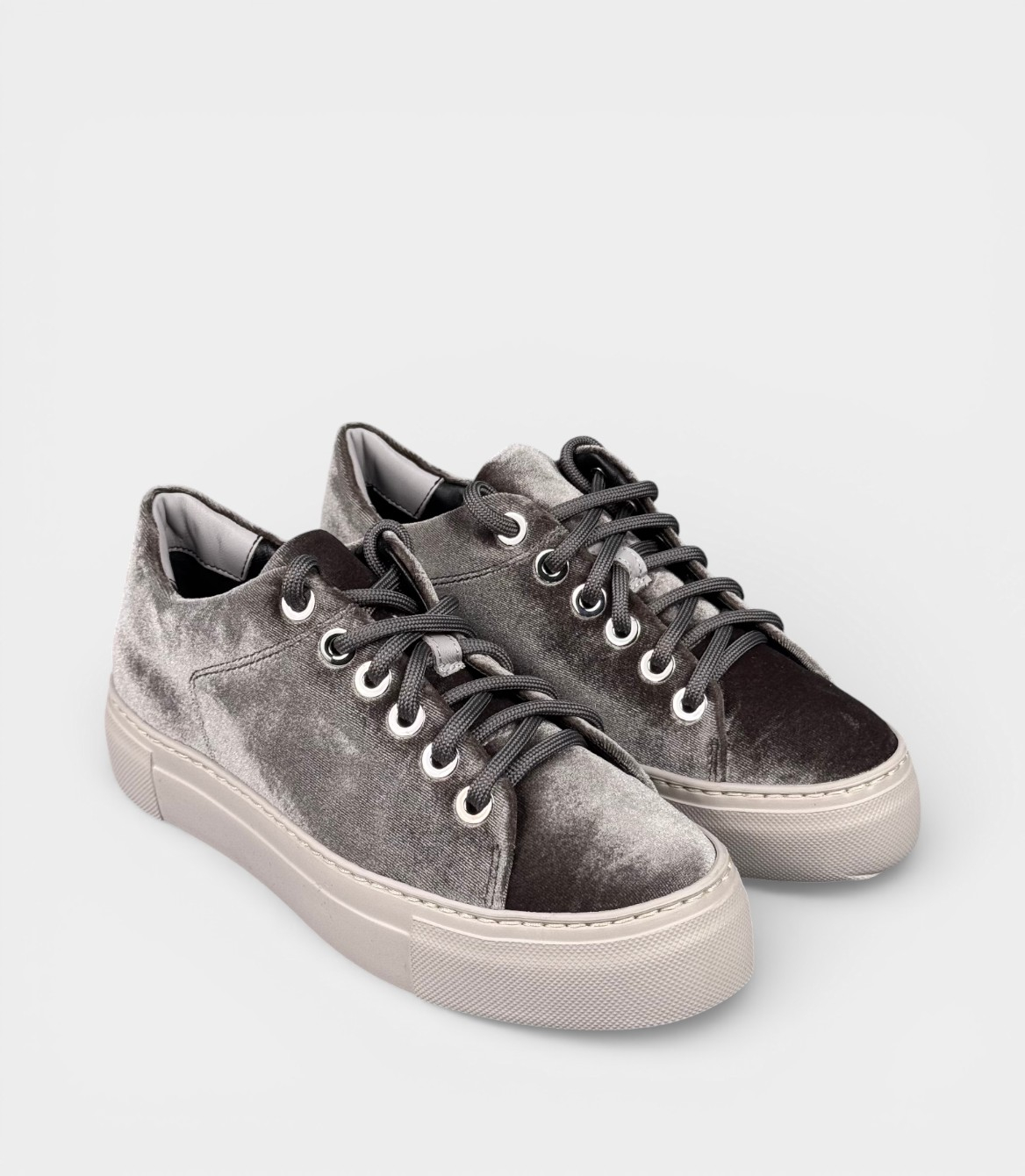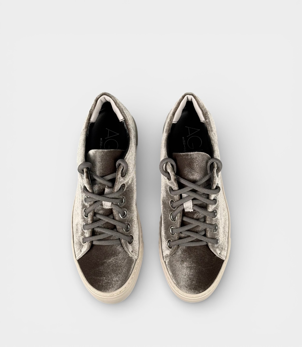 Кросівки AGL Vananda виконані з м'якого велюру, який надає текстурі та блиску, а внутрішня підкладка з шкіри гарантує комфорт і дихання ніг. Матеріал стійкий до зносу, а сірий колір універсальний для комбінацій. Платформа (chunky rubber sole) висотою близько 3-4 см додає зростання без шкоди для зручності, а шнурівка з круглим носком забезпечує ідеальну фіксацію. Це демісезонне взуття підходить для весни, осені та прохолодного літа, захищаючи від легкої вологи та забезпечуючи тепло.